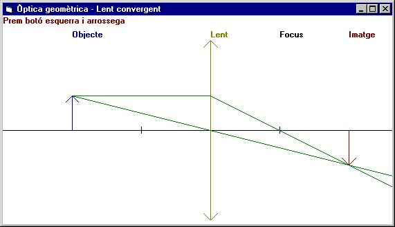 Executar el programa m7p2.exe per conèixer el seu comportament. Veure el llistat del codi del programa, m7p2. Executar Visual Basic per editar el projecte (acabat): m7p2.vbp. Com respondre al ratolí? Fem que la simulació sigui interactivaEl que pretenem aquí és convertir la imatge estàtica en un veritable simulador interactiu. Es tracta de poder moure la posició del focus, de l'objecte o de la lent i veure com influeix en la imatge.Per moure aquests objectes farem servir la rata. Cal que bellugueu la rata damunt d'algun dels objectes, la lent, el focus, l'objecte o el terra. Observeu que quan la rata està damunt d'un objecte que pot ser mogut, aquesta canvia del seu aspecte normal, un fletxa, a una doble fletxa esquerra-dreta o amunt-avall, segons cap on es pugui moure l'objecte. També surt la llegenda, Prem botó esquerra i arrossega. ![]() Fase de disseny de la interfície d’usuariAquest projecte el desareu a C:\VBCurs\VBActivi\m7\p2 amb el nom m7p2.Podem partir del programa de la pràctica anterior i ja tindrem el formulari creat i una part dels events i hi afegirem les modificacions.