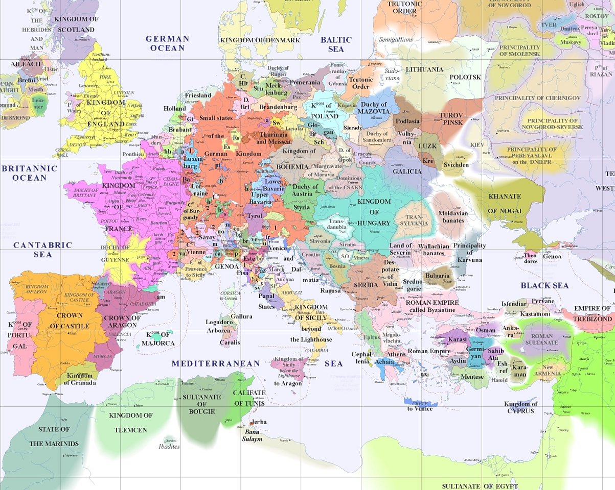 La primera aproximació que hem de fer és de caire geogràfic. Ens hem de traslladar a l'europa medieval. Recordeu que l'edat mitjana abraça un llarg període, que se sol dividir en dues grans etapes: L'alta edat mitjana (s. V - s. XIII) i la baixa edat mitjana (s. XIV - s. XV). De totes maneres focalitzarem el nostre centre d'interès històrico-literari en una part de tota aquesta etapa del nostre passat. Dit això, a veure si sou capaços amb aquesta activitat de circumscriure l'entorn de la nostra investigació. |