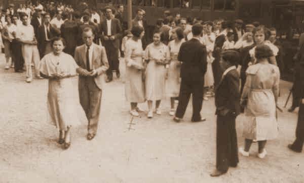 Amb ritme ràpid arribava puntual a l’estació d’Hostalric per comprar el bitllet. En aquells temps funcionaven els trens de vapor. Així que d’Hostalric a Barcelona és trigava unes tres hores en arribar-hi. Durant el trajecte parlava amb la gent del poble que és trobava pel tren. Hi havia seients de primera, segona i tercera classe, però en esclatar la guerra, les classes desaparegueren per assegurar més cabuda als trens. Sempre que podia, anava als seients de tercera, ja que eren els vagons menys buscats i per tan estaven més buits. En arribar a l’Estació de França de Barcelona, els viatgers havien de passar pels burots, uns funcionaris uniformats, encarregats de vigilar les mercaderies que portaven els passatgers. Segons el que portessis et feien pagar un preu o un altre, d'acord amb les normes establertes. La Salome, en passar, ensenyava les dotzenes d’ous que portava a la maleta i a continuació pagava l’import corresponent. La gent que és negava a pagar, el separaven de la multitud i el registraven de dalt a baix, per por a que amagués alguna cosa sospitosa. Un cop fora de l’estació i amb la maleta a la mà agafava el tramvia 29 fins al Passeig de Sant Joan. En aquest carrer hi vivien les seves dues cosines: la Mercè i la Maria. Un cop a casa seva, repartia el menjar per vendre’l i també en donava una part a les seves cosines. Després baixava al carrer, amb el menjar ja al descobert dintre un cistell, i és dirigia a les cases que li compraven. Sempre quedaven dins del pis. La gent que li comprava, li agraïen molt la seva voluntat ja que estaven tots molt necessitats. Normalment anava a tres o quatre pisos, acostumant a ser la mateixa gent. Durant els viatges, sempre procurava passar per llocs segurs ja que en qualsevol moment podien sonar les sirenes, anunciant perill de bombes. En aquells moments tant delicats arrencava a córrer tan com podia fins a un lloc ben segur. Un cop acabada la feina, passejava una mica per la zona més cèntrica de Barcelona ja que fins al vespre no sortia el tren fins a Hostalric. Aprofitant l’estona lliure se n'anava cap a la presó Model a fer de recadera. Portava guardades cartes dintre el moneder, de familiars que tenien parents a la presó. Un cop a dintre, ella preguntava per tal presoner i uns instants més tard la feien entrar en una habitació aïllada on lliurava personalment la carta a l'interessat. Quan ja començava a ser tard, agafava un tramvia i és dirigia a l’estació de França. A la tornada no hi havia mai borots. Un cop a Hostalric se’n tornava a casa caminant, i li donava a la seva mare els diners obtinguts durant el dia. Va treballar d’estraperlo durant els tres anys de la guerra. Amb els diners obtinguts podien comprar una mica de menjar. Barcelona en guerra En aquell temps Barcelona era més reduïda que ara. La Salomé sempre freqüentava les zones més cèntriques i creu que en aquella època era com estar en un poble gran, ja que coneixia a molta gent. Hi havia moltes botigues obertes durant el dia, amb productes escassos i a preus molt elevats. Normalment no eren de menjar. La gent anava vestida com podia, no és veien classes. En general és respirava un ambient molt tens, tothom corria per por a bombes. Pels carrers és veien generalment dones, nens , gent gran i esgarrats. Per circular per la ciutat hi havia els tramvies. De milicians n’hi havia pocs ja que molts estaven en els fronts, però els que hi havia es trobaven en llocs molt concrets. A vegades agafaven algun balcó per posar-hi canons de llum perquè a la nit poguessin veure amb facilitat els avions que sobrevolessin la zona. Els policies solament és dedicaven a estar-se en els seus edificis. Hi havia molta gent que feia servir l’estraperlo com a única sortida. Hostalric franquista Els últims dies de la guerra és van esperar amb molta impaciència ja que la gent desitjava la pau. Mentrestant moltes persones van preferir fugir a l’exili. Finalment, el primer de febrer de 1939, entraren a Hostalric tancs italians aliats a l’exèrcit nacional. Així acabà tres anys d’angoixa pels hostalriquenys. Més tard els nacionals instal•laren menjadors d’Auxili Social per la gent més necessitada, ja que el menjar continuava essent molt escàs. Uns dies més tard se celebrà la Candelera i així, de mica en mica, tornà la “calma” al poble.