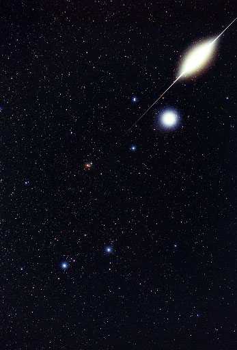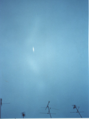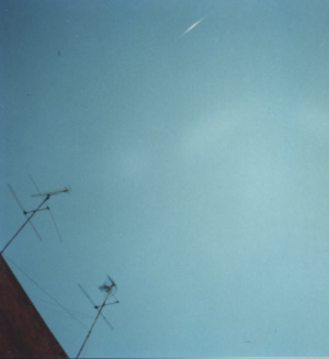 15-10-1998 a les 19h. 37m. hora oficial. Magnitud: -7. Alçada sobre l'horitzó: 61º. Azimut: 15º (NE). Càmera reflex 50 mm. a f:1,8. 15" d'exposició. Pel.lícula Kodak Gold 400 ASA. Localitat: Barcelona ciutat. |