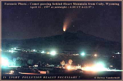 el cometa Hale-Bopp estava a punt d'amagar-se darrera de la muntaya Heart,