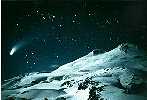 Till Credner. Astronomical Institutes of the University of Bonn El Hale-Bopp al vespre, el 13 d'abril de 1997 des del Pic Terskol Observatory al Càucas septentrional (Russia, Kabardino-Balkaria). El cometa s'hi veia exactament a sobre de l'Elbrus, que amb els seus 5642m d'altitud és la muntanya més alta del Càucas. El paisatge nevat s'hi veu il.luminat per la lluna creixent. |