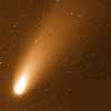 Bob Yen Lugar: Mojave Desert, California Equipo: AstroPhysics 610mm f/6 compresor de gran campo y cámara 6x7. Tomada durante la fase de totalidad del eclipse de luna (~8:38 pm). El cometa está a punto de ponerse tras las colinas. La cola iónica apenas es visible a causa de la fuerte absorción atmosférica, pero la brillante cola de polvo se ve claramente. El color anaranjado también es debido a la poca altura sobre el horizonte. |