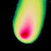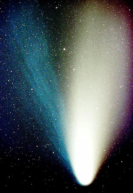 Ian Griffin Lugar: Astronaut Memorial Planetarium & Observatory, Cocoa (Florida) Equipo: telescopio Maksutov 12" f/5 y cámara SBIG ST8. Exposición de 2 minutos del cometa Hale-Bopp. Campo de visión: 0.3 x 0.2 grados. Corregida y filtrada. Falso color. |