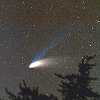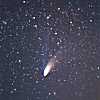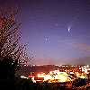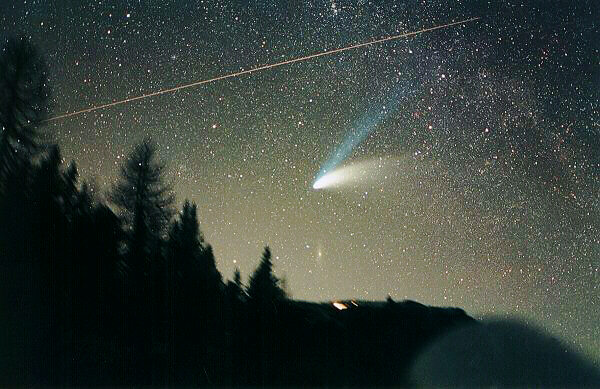 Autor: Eduard Garcia Localitat:Cap de Rec (Lleida) Equip: 180mm f/2,8. Exposició: 4 minuts amb Fuji 800. La foto del cometa està feta al refugi de muntanya Cap de Rec (2000 metres sobre el nivell del mar). |