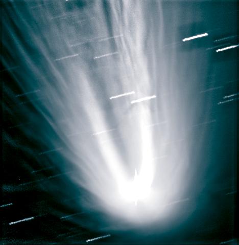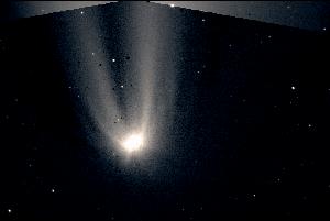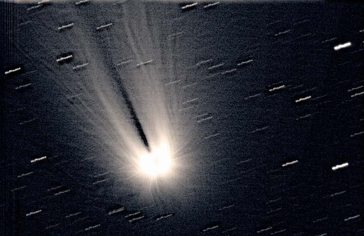 Autor: Tim Puckett Localitat: Puckett Observatory, Mountain Town (Georgia) Equip: reflector 30 cm f/6 y càmera Apogee AP-7 CCD. Composta amb 70 exposicions de 15 segons. La primera exposició es va fer a les 01:00:58 UT. Les imatges van ser processades per destacar els raigs del nucli. Copyright©1997 Tim Puckett |