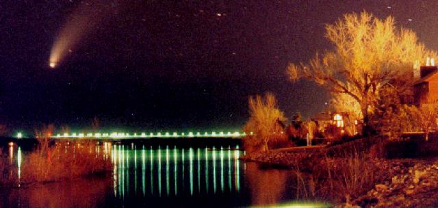 Autor: Geoff Simon Localitat: Oahe Dam, South Dakota Vista del Hale-Bopp sobre l'embassament Oahe (pronunciat ouaji)