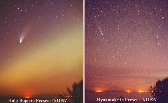 El cometa Hale-Bopp al costat d'Algol i Rho Persei. A l'esquerra