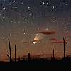 Autor: Bob DuBrall Localitat: Saguaro National Park, Arizona. Exposició: 50mm, f/2.8. 60 segons amb Fuji 800. Els cims estan il.luminats pels llums de Tucson city. |