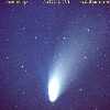 Autor: Antoni Parra Localitat: Torre Foster de Barcelona, Catalunya (Espanya) Equip: 28 mm f/2.5. Fuji 400 super G. Mosaic de 4 exposicions de 40 segons. El Hale-Bopp shi veu a sota d'Auriga, a la dreta. Geminis i Canis minor shi veuen a la part central. Betelgeuse és l'estel brillant que s'hi veu a sota de Geminis, a sobre d'un arbre. |