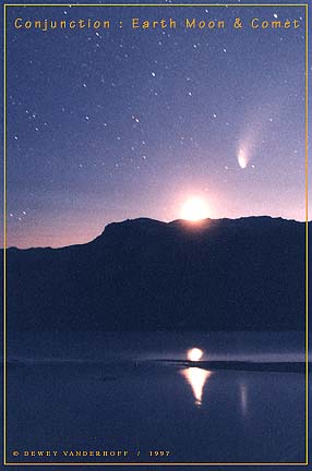 Conjunction : Earth Moon and CometAuthor: Dewey Vanderhoff The May 8 conjunction of the new crescent Moon and receding Comet Hale-Bopp