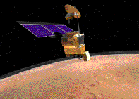 After launch on November 7, 1996, at 12:00:50 EST and a 10 month cruise phase, it was inserted into an elliptical capture orbit in September 11, 1997. Over the next four months, aerobraking maneuvers will be used to change the orbit the the final mapping orbit at an altitude of 378 km, an inclination of 92.9 degrees, and a low eccentricity of 0.0072. This final orbit will be sun-synchronous, so data will be collected with the sun at the same mid-afternoon azimuth for each pass. After one martian year (from January, 1998 until December, 1999), the orbiter will act as a relay in suport of other missions of the Mars Surveyor program, until January 2003. The spacecraft is a cubic box 1.17 m in size and 1 ton of weigth. The main 596 N thruster use hydrazine and N2O4 propellant. Control will be through 12 4.45 N hydrazine thrusters, mounted in groups of three. The initial propellant load will be 216.5 kg of hydrazine and 144 kg of N2O4. Solar panels will provide 667 W of power at aphelion. The instruments are basically the same that equipped the spacecraft Mars Observer, lost in 1992: