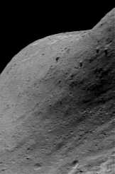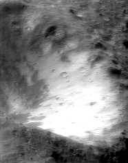 La zona cóncava visible dalt a l'esquerra correspon a la regió coberta de blocs que apareix a la imatge publicada al 4 d'abril de 2000. 6 septiembre, 2000. 101 km de altura orbital.