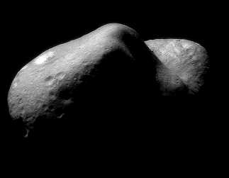 l'eix major de l'asteroide, i nombrosos cràters petits. La manca