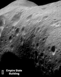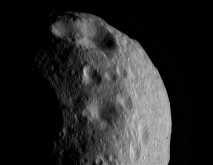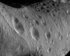 Els cràters es superposen formant depressions lobulades. La més gran, dalt a la dreta, prop de l'horitzó, té 1,7 km de diàmetre. |