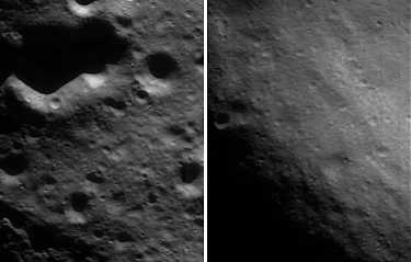 Imatges obtingudes des de 99 km del centre de l'asteroide. La de l'esquerra