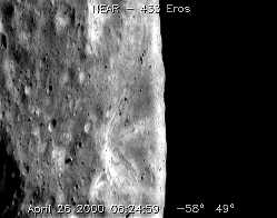 d'Eros prop del terminador, la frontera entre el dia i la nit. on les ombres