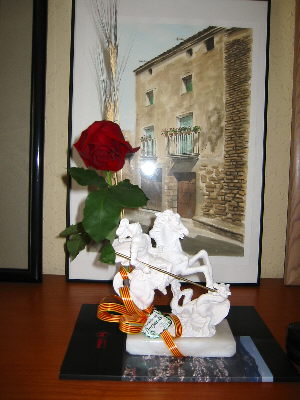 El cavaller, el drac i la princesa La llegenda assegura que, en temps remots, un cavaller anomenat Jordi va salvar una princesa de morir devorada per un drac que tenia atemorit tot un reialme, i que de la sang de l'animal en va néixer una rosa. Així, o més o menys així ho va contar el dominic italià Iacopo da Varazze (1228-1298), autor de la Llegenda àuria (1265-1266), una col·lecció de vides de sants escrita en llatí en què es pot trobar La vida de Sant Jordi. |