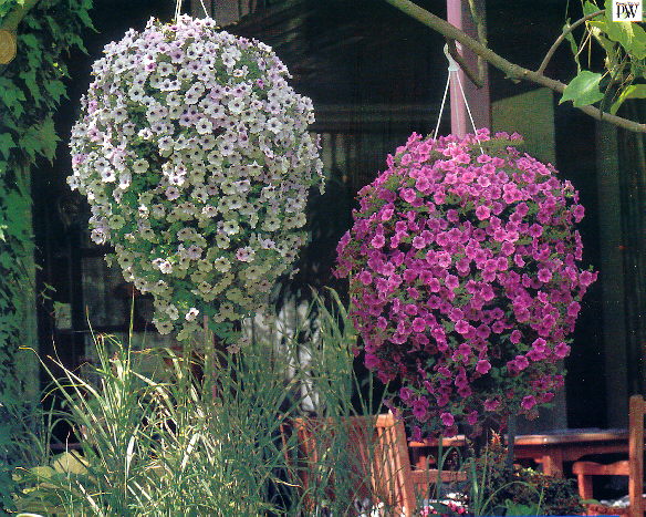 Floració d'abril a octubre. Petúnia penjant amb flors elegants. Espectacular en test per penjar. Pot arribar a fer 60 cm de diàmetre.