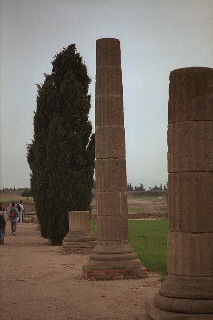 Les columnes del fòrum eren acanalades com les dòriques però tenen una ferma base amb tors i escòcies. Cal observar que hi ha una bella disminució de diàmetre en el tambors del fust, a fi d'augmentar la sensació visual de verticalitat i d'esveltesa. Damunt les columnes hi havia un capitell i tot un entaulament. Aquest fòrum, que substituïa l'antic praesidium romà, donant-li un caràcter civil i comercial, va ser reestructurat al voltant del canvi d'era, pocs anys abans del naixement de Crist. Tenia des d'un origen voluntat de suplantar el modest negoci grec.