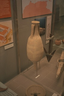 Les àmfores eren els envasos usats per al transport. En moltes s'hi duia vi, però en d'altres s'hi transportava oli, conserves en salaó, etc. Les àmfores s'encaixaven bé entre elles mercès aquesta perllongació inferior que les equilibrava. Als vaixells de transport les amuntegaven estretament i n'hi encabien a voltes milers. Sovint les àmfores, un cop usades, es trencaven i no es reaprofitaven. Els fragments d'àmfores, força abundants, són un ajut per a la datació arqueològica. També cal remarcar la reconstrucciò d'una àncora. Se'n conserva la part metàl.lica tan sols. Les àncores afavorien l'estabilitat de la nau.