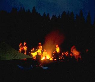At the end of the day, the camp fire is a very special moment when all the campers gather around a fire and sing songs or tell stories, sometimes frightening stories.