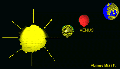 | Triga 243 dies a donar una volta sobre el seu eix i 224,7 dies a donar una volta completa al Sol. El relleu de Venus es coneix principalment pel radar, ja que està cobert per una espessa capa de núvols. Ha estat explorat per les astronaus russes Venera i Vega i les nord - americanes Mariner 2, 5 i 10 i Pioneer 1 i 2. |