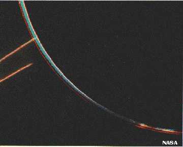 En la foto inferior l'anell de Júpiter il.luminat pel Sol: