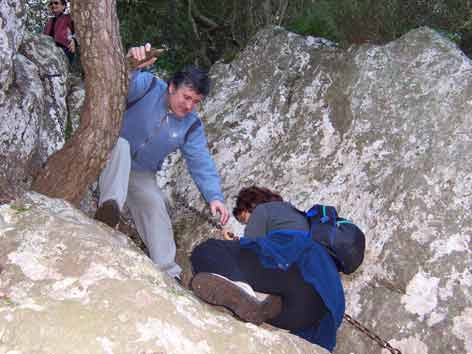És des d'aquesta església que hem agafat un camí de PR (petit recorregut) i l'hem seguit fins al castell, passant per la drecera del pont. Hem pogut observar les dues vessant ben diferenciades de la muntanya: la solana i l'obaga. En aquesta última la vegetació de molses, falgueres, galzerans, margallons,...és exhuberant. S'ha d'anar en compte perquè el terra llisca una mica.