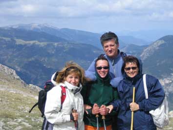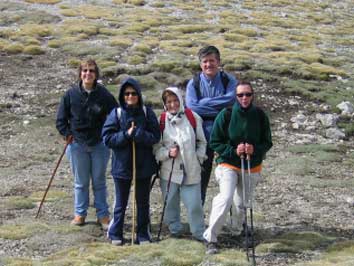 Però, sobretot, vam pujar al Pedraforca. Ho vam fer per la banda de Gòsol, seguint el PR C-123. Surt des de l'entrada del poble, a la dreta. Està molt ben assenyalat. Puja pel cap de Sedís, travessa el torrent de l'Aubagó i, ràpidament, s'enfila pel mig del bosc de la Serra de la Tossa, fins arribar al Pla de la Serra a 1852 m. El camí segueix pel coll i les canals de Cabra i va guanyant alçada fins arribar a la tartera de Gòsol, per on s'arriba a l'Enforcadura del Pedraforca, a 2356 m. Aquesta pujada es fa en dues hores i mitja, aproximadament. Vam tornar a baixar pel mateix lloc i vam tardar pràcticament el mateix, ja que és molt dret i s'ha d'anar frenant. A més a més havia plogut i el terra lliscava una mica. És un camí molt adequat per pujar a la muntanya, perquè és una mica més curt que el tradicional de la canal del Verdet, però fa més pujada. A dalt vam haver d'aguantar força vent i fred. Vegeu els valents: