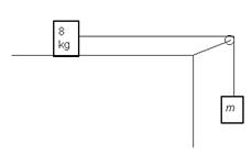 En el cas a) calculeu el treball de cada força en un desplaçament de 20 m i la velocitat final si inicialment va a 2 m/s. 3.- Un cos de 8 kg està sobre un pla horitzontal . Si el coeficient de fregament entre el cos i la superfície horitzontal és 0,2 i aquest cos s'uneix a un altre cos de massa m mitjançant un fil a través de una politja, tal com indica la figura.