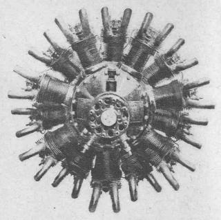 Motor radial de aviación rotativo, de 250 H.P. Estos motores ofrecen la particularidad de que están sujetados al bastidor del avión por su eje motor que permanece inmóvil, girando todo el motor juntamente con la hélice que está fijada a su cárter. Son carísimos de construcción, puesto que tanto los cilindros como su cárter deben fabricarse de acero forjado, pues la fuerza centrífuga no permite que se fabriquen de materiales fundidos. La refrigeración que se efectúa por aletas es excelente, pero estos motores no se han generalizado mucho y actualmente se construyen los estrellas fijos.