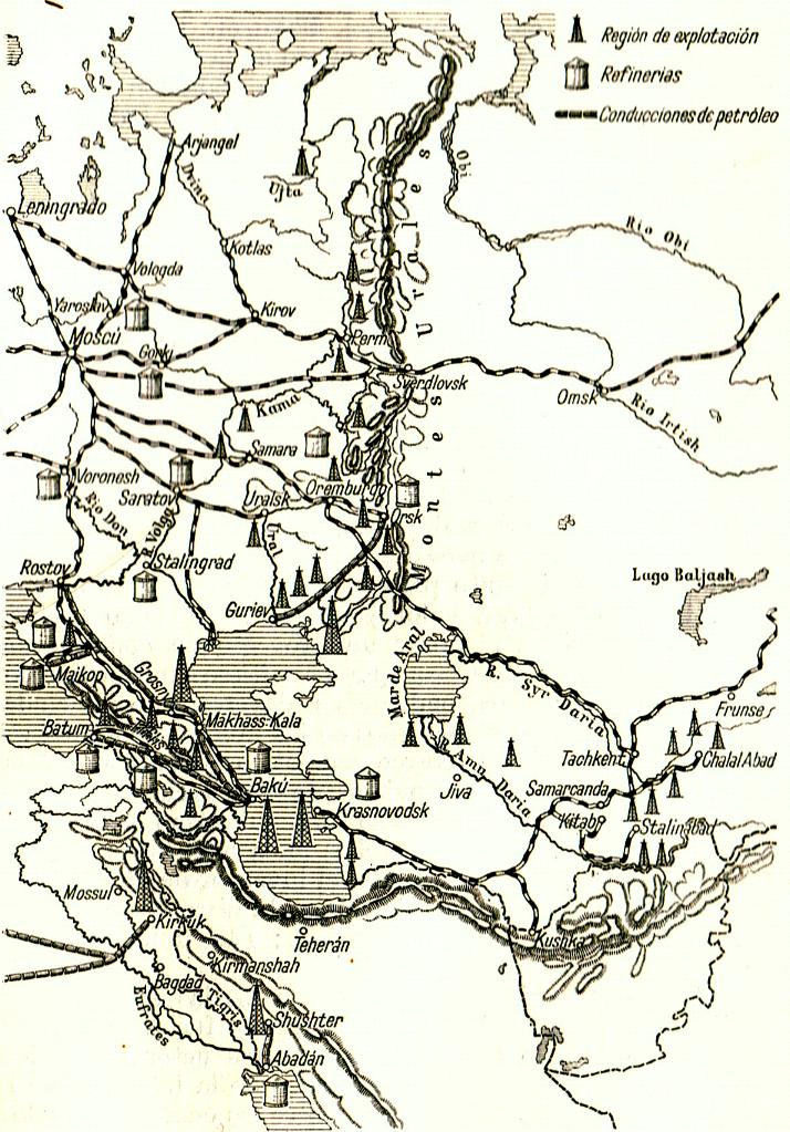 Al estallar la guerra mundial, Bakú era una colonia de capitales extranjeros; más de la mitad de la producción y las tres cuartas partes de la exportación se hallaban en manos de Compañías forasteras, la Standard Oil, la Royal Dutch Shell, Nóbel, Rothschild. Esto no quita, sin embargo, que en Bakú hubiera numerosos millonarios nacidos y establecidos en la localidad, pero incapaces de realizar una política independiente, en particular en lo que se refería a la exportación.