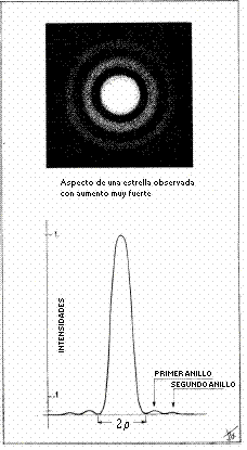 mancha de difracción interesa en primer lugar al astrónomo, puesto que fija el límite del detalle más pequeño que