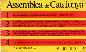 Targeta d’adhesió als punts programàtics (1971) de l’Assemblea de Catalunya. (estiu 1976) . |