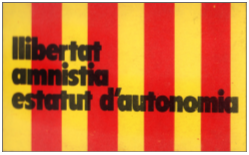 Llibertat, Amnistia i Estatut d’Autonomia!!Enganxina de l’època amb el lema que era corejat a les manifestacions. |