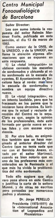 “La Vanguardia”. 20 de març de 1982. Carta de l’ex-director del “Servei d’Exploració, Orientació i Rehabilitació” |