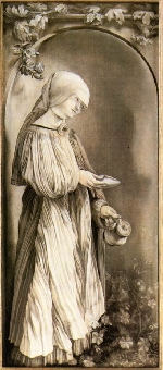 Una de les obres més singulars de Grünewald són aquestes quatre grisalles o monocroms. Van ser realitzats entre el 1509 i el 1510. Les taules fan un alçada de prop d'un metre i una amplada d'uns 42 centímetres. Les peces es troben a Frankfurt, al Städelisches Kunstinstitut. Representen quatre sants: sant Llorenç amb la graella, sant Ciriac amb la princesa Artèmia agafada pel coll, santa Isabel amb la llavor i la regadora i santa Llúcia, cega, amb la palma. Aquestes imatges consituteixen un dels punts més alts de l'art de Grünewald perquè amb la mínima dotació de color aconsegueix una gran expressió a base de contrastos entre llum i ombres. |