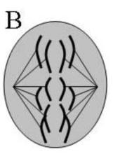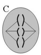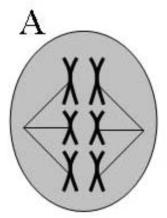 Observeu els tres dibuixos següents. Representen tres cèl·lules en divisió que pertanyen a diferentes teixits d'una mateixa espècie animal: