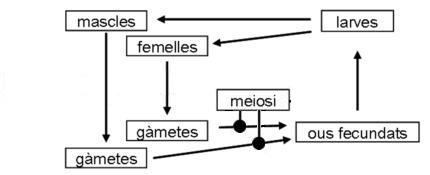 El musclo zebra (Dreissena polymorpha) és un petit mol·lusc bivalve originari de la regió pontocàspica (Mar Negre, Mar Caspi i Mar de l’Aral) que ha colonitzat regions europees occidentals. Des de fa uns quants anys ha envaït diferents hàbitats de la conca del riu Ebre i la seva capacitat reproductora causa un gran impacte sobre altres espècies i sobre infraestructures (canonades, canals, embarcacions, etc). Els musclos zebra poden ser mascles o femelles, la fecundació dels gàmetes és externa i una sola posta pot tenir fins a 40.000 ous. Dels ous fecundats surten larves planctòniques que es poden desplaçar per l’aigua. Unes quantes setmanes després de sortir de l’ou la larva es fixa a un substrat i es desenvolupa el musclo adult. | ||||||||||||||||