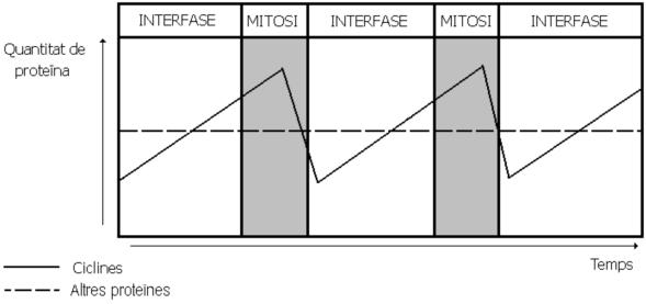 S’ha investigat la influència que cert tipus de proteïnes, anomenades ciclines, exerceixen sobre la divisió cel·lular en un cultiu de cèl·lules musculars humanes. El gràfic següent es va construir a partir dels resultats de diverses anàlisis.
