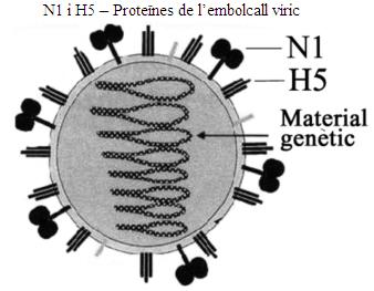 El virus H5N1 és causant d’un tipus de grip aviària que ocasionalment ha infectat persones que havien estat en contacte amb aus malaltes en diversos llocs del món. Durant la tardor del 2005, l’ Organització Mundial de la Salut ha advertit del risc real que aquest virus muti i pugui causar una epidèmia mundial entre els humans, contra la qual estem immunològicament poc protegits. El material genètic d’aquest virus té una gran capacitat de canviar a mesura que es replica. El virus inicial es veu reemplaçat per noves variants que presenten canvis en les proteïnes del seu embolcall. | |||