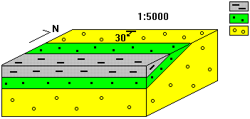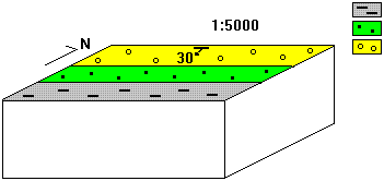 5. Assenyala l'angle de cabussament de les argiles en el bloc diagrama: