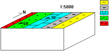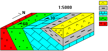 5. Assenyala l'angle de cabussament de les argiles en el bloc diagrama: