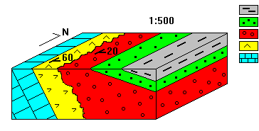 5. Assenyala l'angle de cabussament dels gresos en el bloc diagrama: