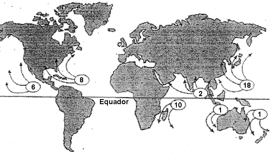 6. Quina direcció tenen els huracans de l'hemisferi nord?: