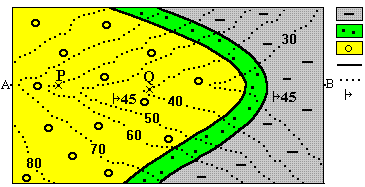 4. En quina part del perfil topogràfic AB apareix el punt P?: