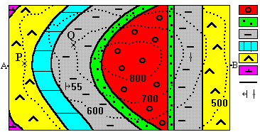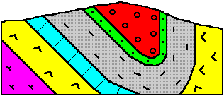 4. Com es representen en el tall geològic els símbols dels guixos?: