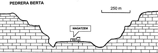 L’Administració obliga a restaurar l’àrea afectada per l’extracció d’un recurs natural. El tall geològic adjunt mostra l’estat actual de l’explotació de la pedrera Berta. Per a la seva restauració s’hauran d’aplicar un seguit de mesures. Esmenteu quines són: