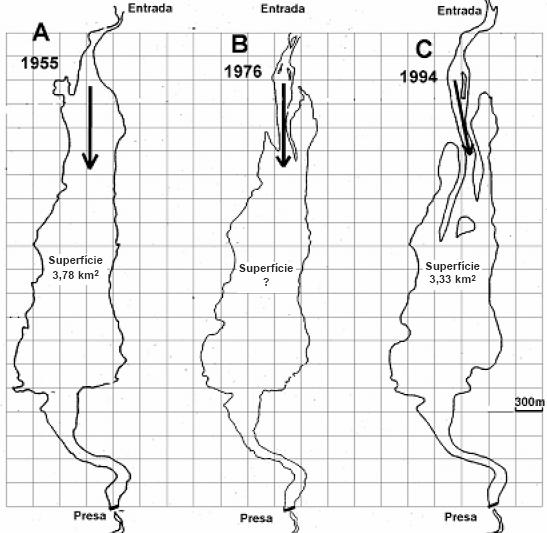 Els mapes següents representen el perímetre d’un embassament. Van ser confeccionats en anys diferents a partir de fotografies aèries.